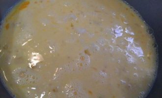 Яйца смешать с молоком, посолить, взбить венчиком. Добавить рис.