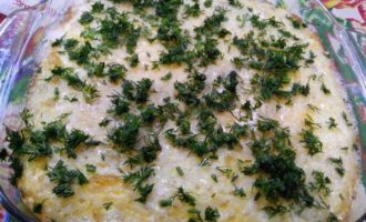 • Сверзу посыпаем натерным сыром и еще минут 5 печем в духовке.