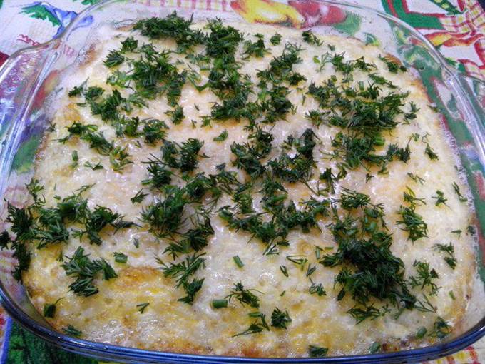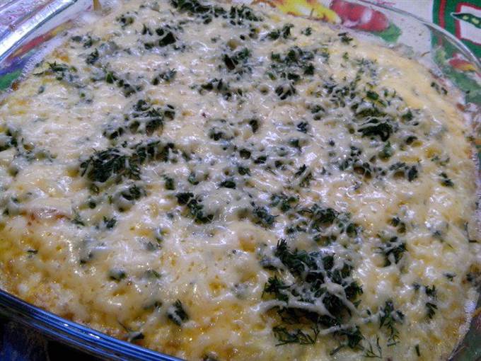 • Сверзу посыпаем натерным сыром и еще минут 5 печем в духовке.