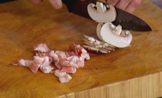 • Оставшийся бекон нарезать небольшими кусочками.