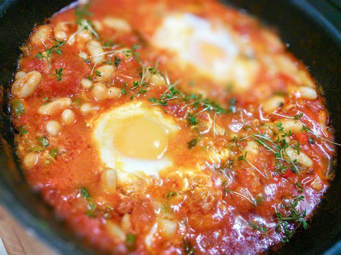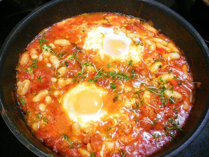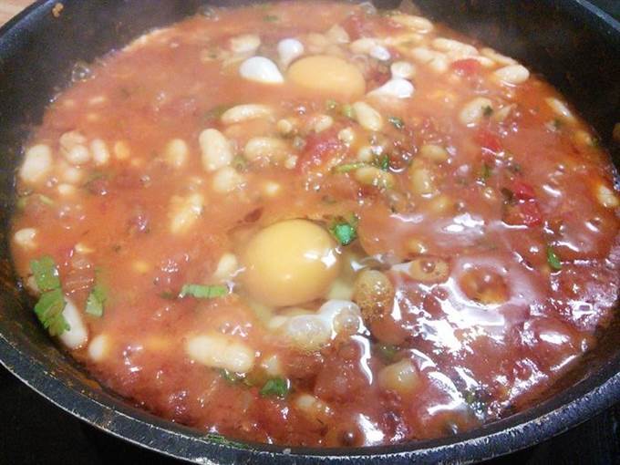 Солим, перчим и добавляем сахар по вкусу. Промываем фасоль под проточной водой и добавляем фасоль к томатном соусу. Прогреваем и добавляем петрушку.