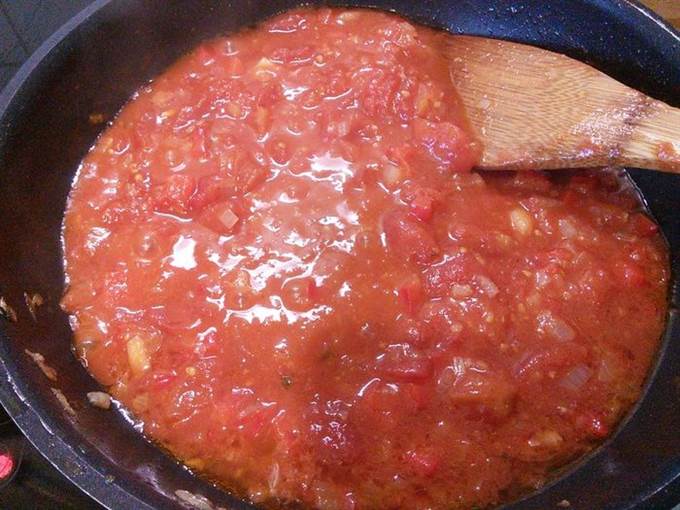 Итак пассеруем нарезанный лук и чеснок до прозрачности, добавляем рубленный перец чили (остроту регулируйте по своему вкусу) и измельченные помидоры, тушим под крышкой приблизительно 15 мин.