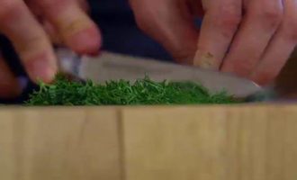 • Укроп мелко порубить. На запеченные яйца в помидорах выложить бекон и посыпать зеленью.