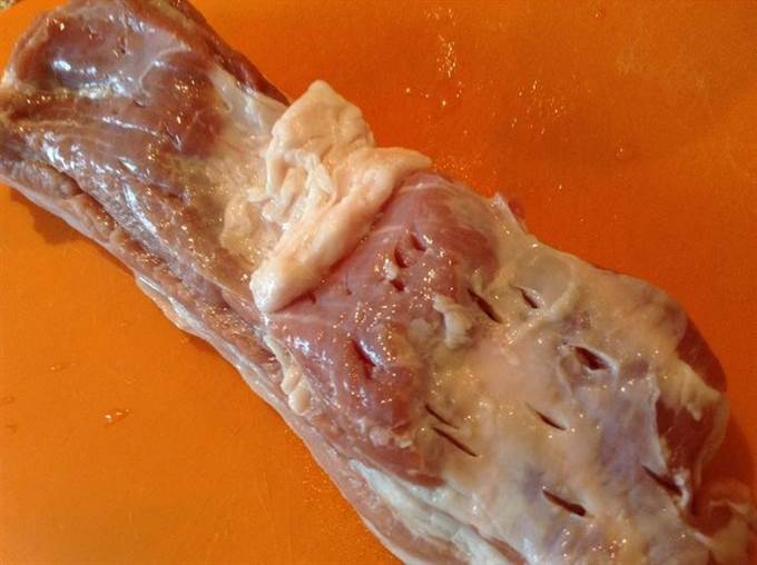 Грудинку хорошо вымыть и обсушить бумажным полотенцем (еще можно «потыкать» в нее ножом).
