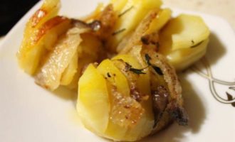 По истечении времени вынимаем картофель из духовки, разворачиваем фольгу, если картофель мягкий, то блюдо готово.