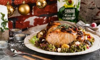 • Запекайте мясо в фольге 1 час 10 минут при температуре 180°С, за 15 минут до окончания приготовления освободите мясо от фольги и немного прибавьте жар до 200°С (я включаю еще верхний гриль), тогда корочка получится хрустящей. Приятного аппетита и вкусного вам Нового года!