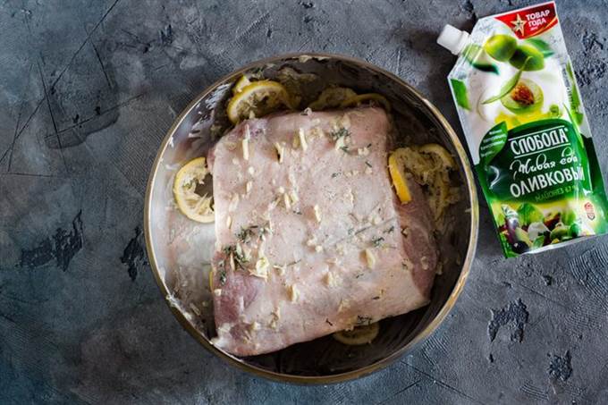 • Выложите в маринад мясо, натрите со всех сторон маринадом и оставьте на два часа при комнатной температуре.