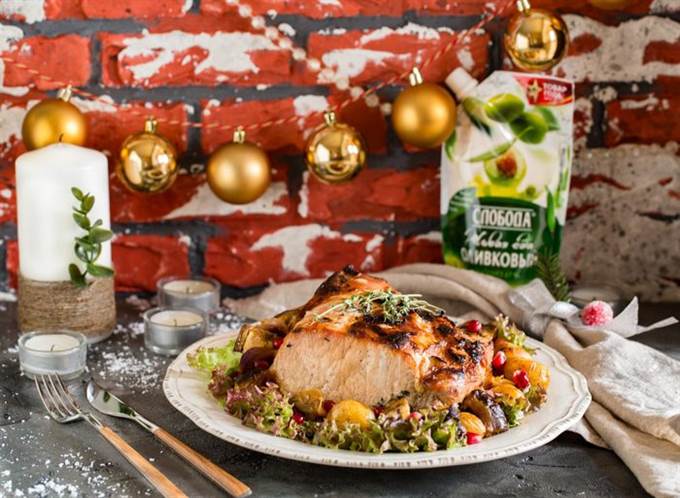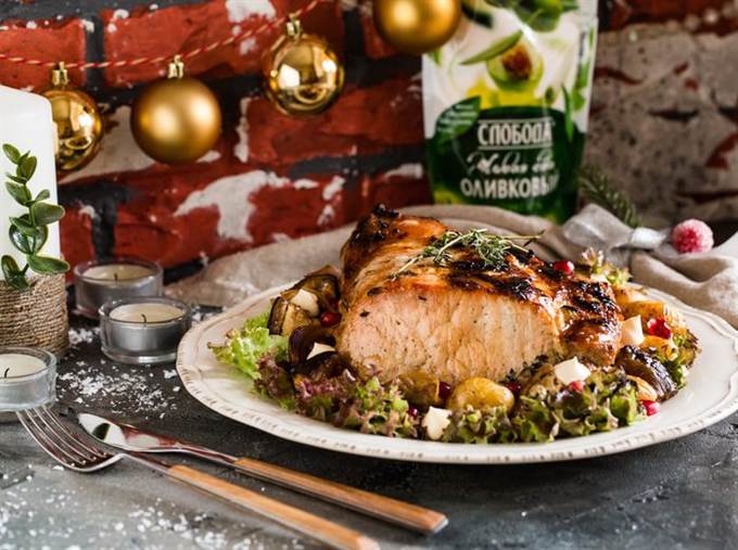 • Запекайте мясо в фольге 1 час 10 минут при температуре 180°С, за 15 минут до окончания приготовления освободите мясо от фольги и немного прибавьте жар до 200°С (я включаю еще верхний гриль), тогда корочка получится хрустящей. Приятного аппетита и вкусного вам Нового года!