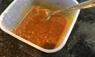 • В отдельной миски смешайте 3 ст. л. оливкового масла, паприку, куркуму, прованские травы, соль, перец и выдавленный прессом чеснок. Хорошо натрите полученной смесью курицу и выложите в форму для запекания на овощи.