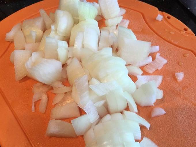 • Мелко нарежьте лук. Разогрейте в сковороде на среднем огне 2 ст. л. Растительного масла и обжарьте лук до золотистости.
