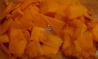 Мякоть тыквы вымыть и нарезать кубиками.