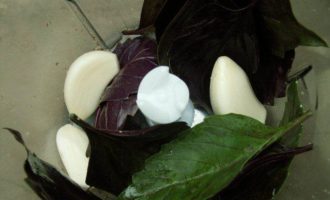 • Базилик и чеснок мелко рубим (я использовала измельчитель). Яйца взбиваем. Твёрдый сыр натираем на мелкой тёрке.