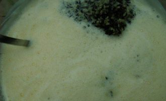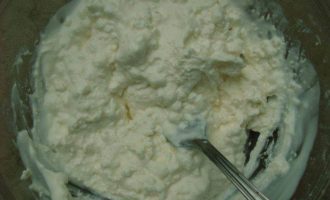 • Добавляем к фете с йогуртом яйца, базилик и чеснок. Я всё взбила блендером для однородности. Солим, перчим.