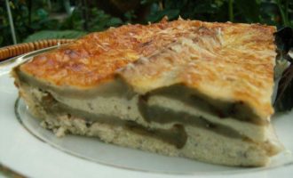 Запеканка из баклажанов под чесночно-базиликовым соусом