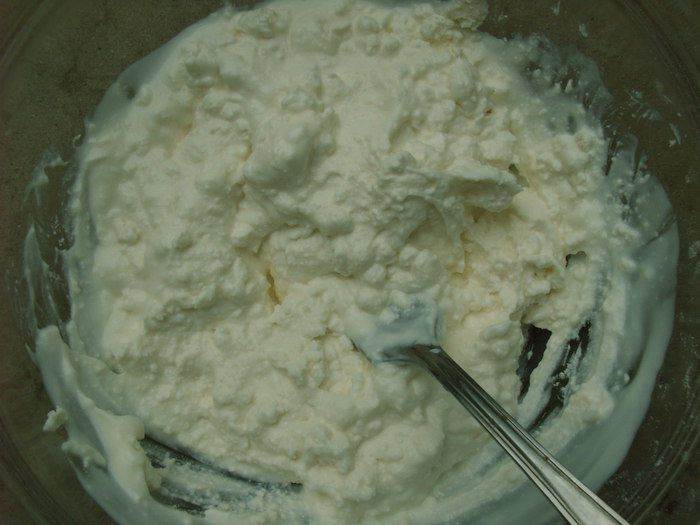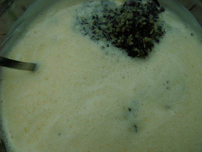 • Добавляем к фете с йогуртом яйца, базилик и чеснок. Я всё взбила блендером для однородности. Солим, перчим.