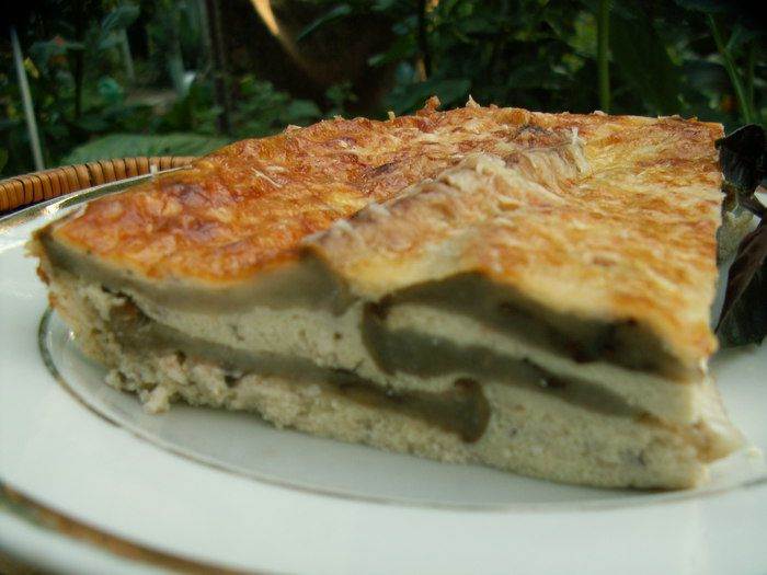 Запеканка из баклажанов под чесночно-базиликовым соусом