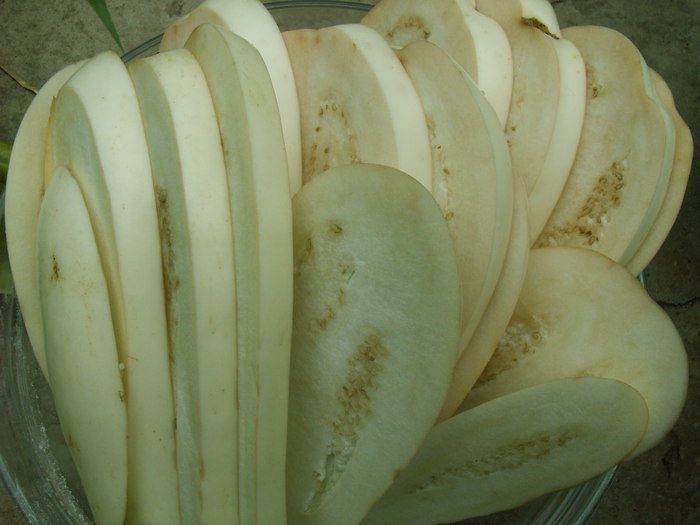 • Баклажаны нарезаем вдоль толщиной около 1 см. Духовку разогреваем на 180°С. Кладём баклажаны в духовку на решётку. Если у Вас есть сковорода-гриль, то великолепно их обжарить именно на ней. Также можно пожарить на обычной сковороде на масле, но слишком много масла берут баклажаны, а летом хочется легких блюд. Баклажаны запекаем до мягкости. Мне понадобилось 20 минут. Баклажаны я никак предварительно не обрабатывала, потому что белые вобще не горчат. Если у Вас обычные, то после того, как Вы их нарезали, посолите их и дайте постоять, пока они не дадут сок (минут 20 обычно), промойте и отожмите, а потом обжаривайте.