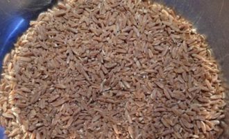 Полбу необходимо промыть (у меня дробленная) и засыпать в кипящую воду (2 литра, при необходимости можно добавить кипятка) и варить на среднем огне без крышки до готовности около часа, но время нужно корректировать в зависимости от качества зерна. Готовая полба набухшая и достаточно рассыпчатая.