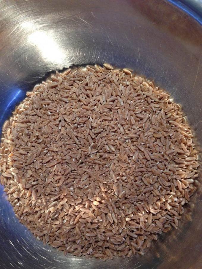Полбу необходимо промыть (у меня дробленная) и засыпать в кипящую воду (2 литра, при необходимости можно добавить кипятка) и варить на среднем огне без крышки до готовности около часа, но время нужно корректировать в зависимости от качества зерна. Готовая полба набухшая и достаточно рассыпчатая.