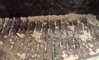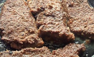 Форму «кирпичик» смазать маслом и посыпать сухарями или той же ржаной мукой — она отлично заменяет!