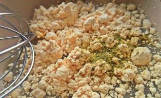 Смешиваем яйцо или яичный порошок, как у меня (3 ст. л.) со сметаной и водой. Добавить любимые приправы по вкусу.
