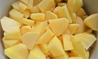 Картофель нужен в качестве дополнительного гарнира. Отвариваем уже нарезанный кусочками.
