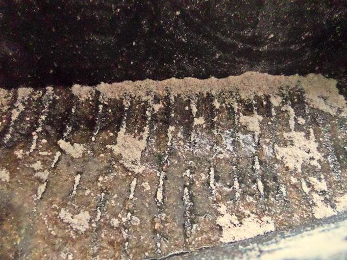 Форму «кирпичик» смазать маслом и посыпать сухарями или той же ржаной мукой — она отлично заменяет!