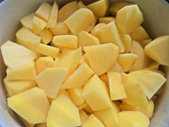 Картофель нужен в качестве дополнительного гарнира. Отвариваем уже нарезанный кусочками.