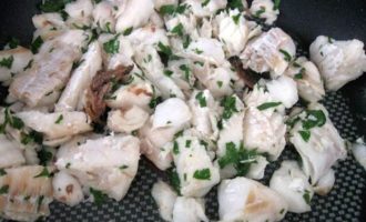 Вынуть рыбу из воды, разобрать на кусочки. Через минуту приготовления анчоусов добавить к ним рыбу, мелко нарезанную петрушку, лимонный сок.