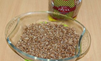 • Отварите гречку ТМ «Националь» в курином бульоне. Форму для запекания смажьте маслом и выложите половину гречневой крупы.