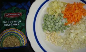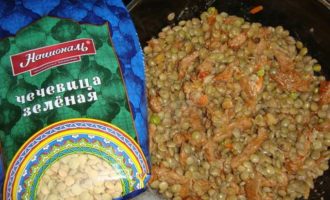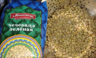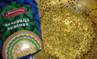 Зеленую чечевицу ТМ «Националь» перебрать, промыть и залить водой. Оставить на ночь.