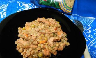 Чечевицу с тушеным мясом подавать к столу горячей с соленьями.