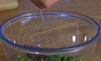 Листья салата сбрызнуть оставшимся оливковым маслом, лимонным соком, бальзамическим уксусом, посолить и поперчить.