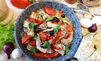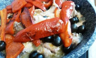 • Кролик со сладким перцем и маслинами готов. Приятного аппетита!