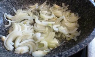 • Разогреем сковороду с маслом и припустим лук до мягкости.