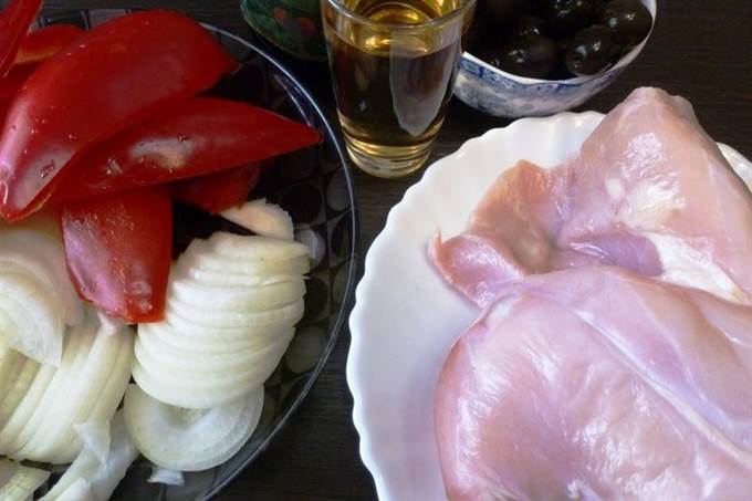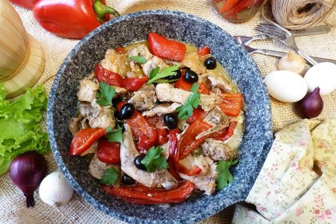 • Кролик со сладким перцем и маслинами готов. Приятного аппетита!