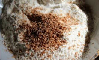 Подготовить панировку: смешать муку, соль, перец и мускатный орех, который обязательно должен быть свежим (его надо натереть на мелкой терке).