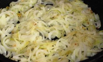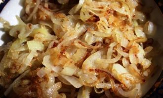 В это время подготовить карамелизированный лук. Нарезать его на полукольца и поджарить в масле с добавлением сахарного песка… Скажу сразу, что сколько лука не поджарь, его всегда будет мало!