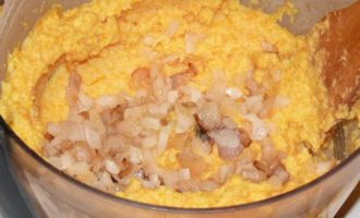 Добавить сало с луком, тщательно перемешать.