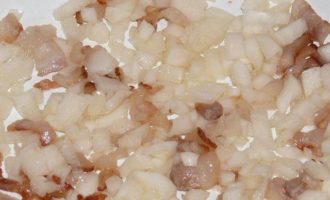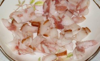 Сало нарезать полосками. Поджарить до прозрачности.
