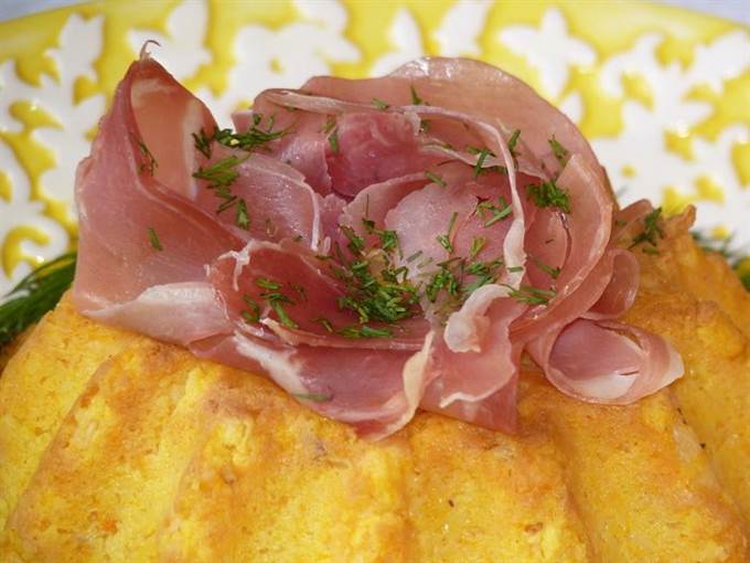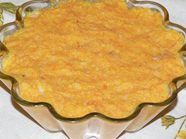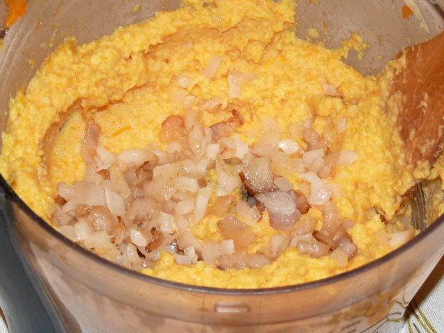 Выложить картофельно-тыквенную массу, разровнять.