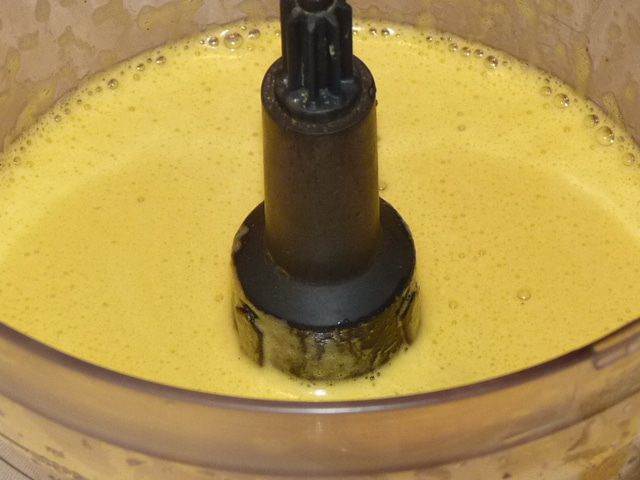 Тем временем взбить яйца, добавить соль по вкусу, куркуму, мускатный орех и разрыхлитель. Перемешать, добавить муку, еще немного взбить.