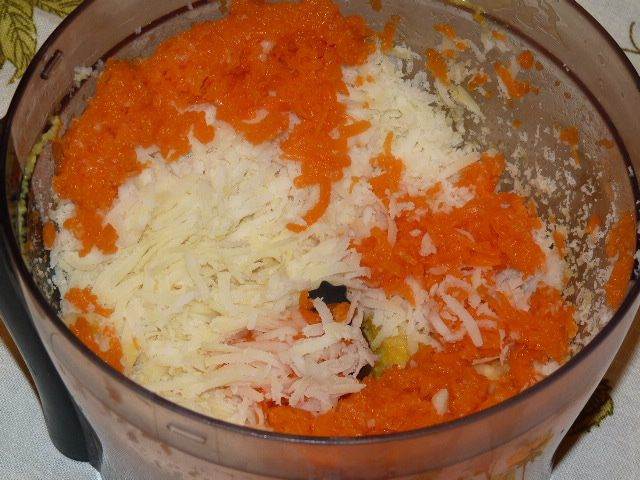 Картофель очистить, натереть на терке, добавить к яйцам. Тыкву натереть, добавить в массу, перемешать.