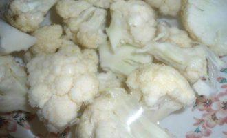 • Готовим тапенад: цветную капусту разобрать на соцветия и отварить в течении 10 минут в подсоленной воде. В микроволновке заняло 7 минут. Остудить. Чеснок почистить.