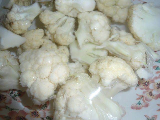 • Готовим тапенад: цветную капусту разобрать на соцветия и отварить в течении 10 минут в подсоленной воде. В микроволновке заняло 7 минут. Остудить. Чеснок почистить.