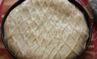 • Для украшения я вырезала решетку. Оставляем на 15 минут и смазываем яйцом.