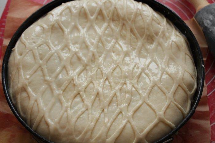 • Для украшения я вырезала решетку. Оставляем на 15 минут и смазываем яйцом.
