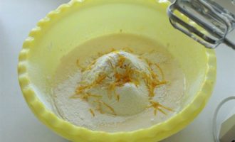 Просеять муку с разрыхлителем, добавить цедру одного лимона.