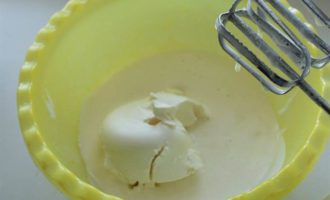 Взбить яйцо с 120 гр сахара и солью.Добавить маскарпоне и снова взбить.