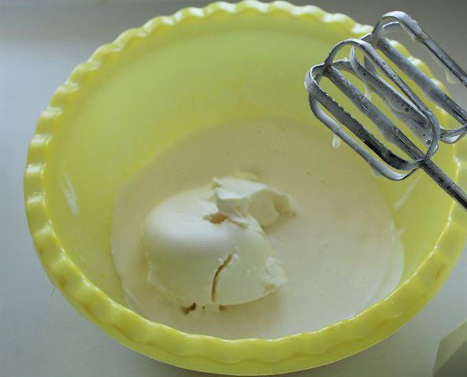 Взбить яйцо с 120 гр сахара и солью.Добавить маскарпоне и снова взбить.